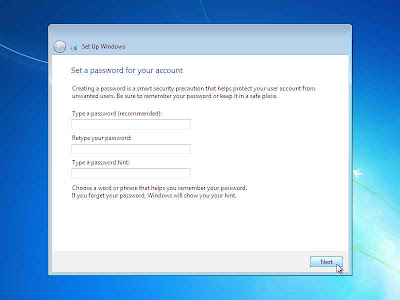 Masukan Passwordd, jika tidak ingin menggunakan password, langsung next aja.